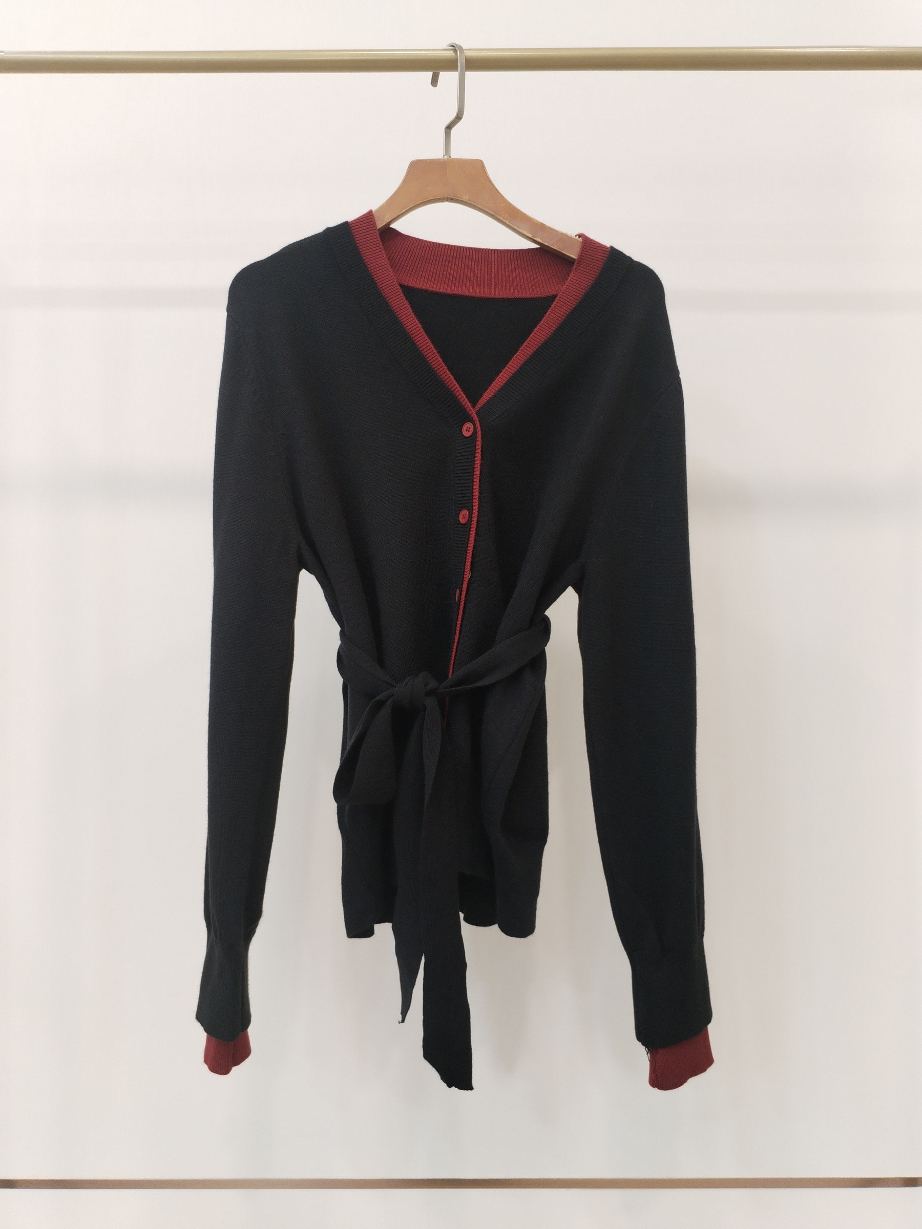 1618 Sashka V-Neck Knit Cardigan w Sash (B 51-57cm; L 56cm)