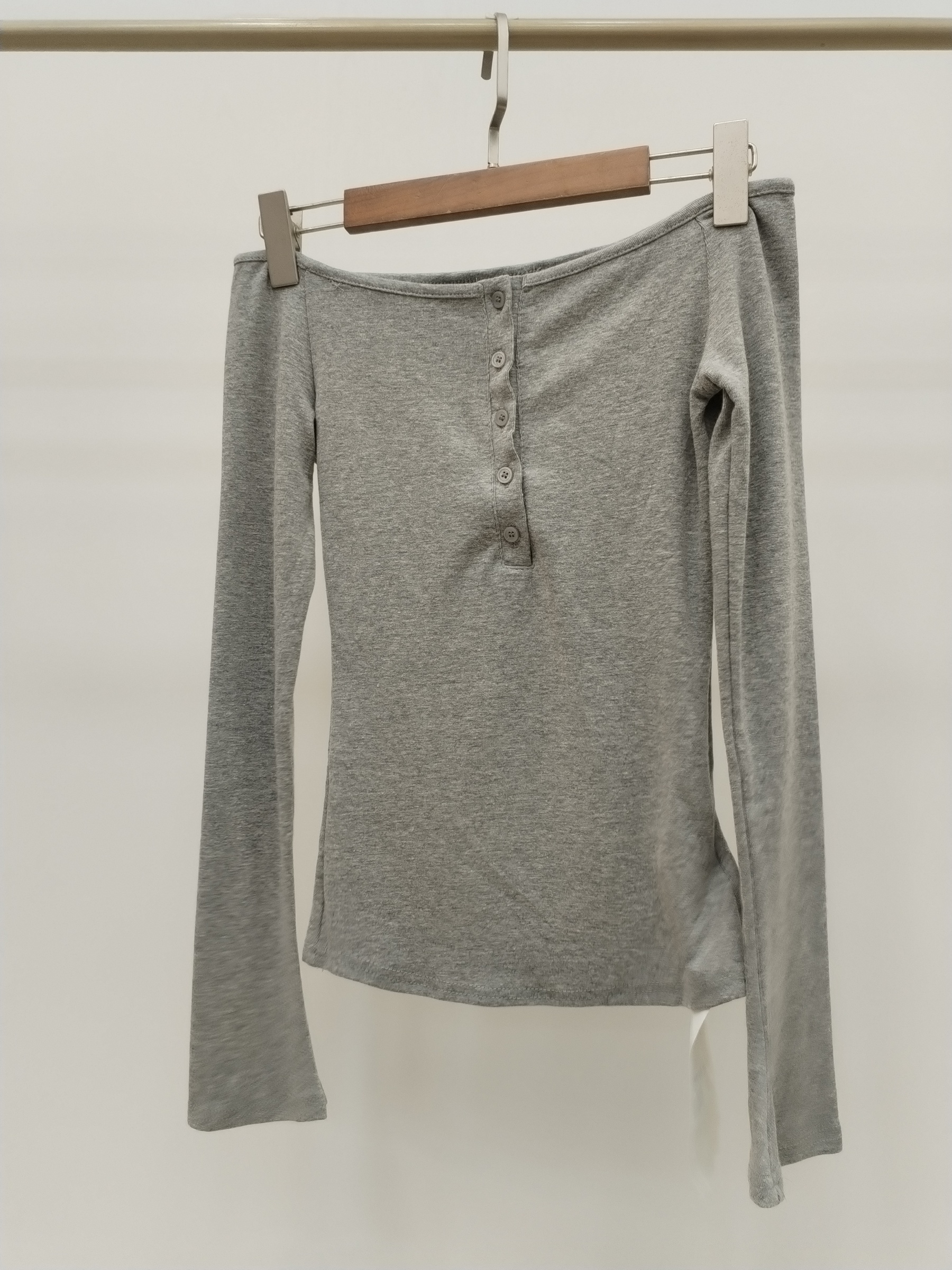2536 Ovalda Off Shoulder Long Sleeve Cotton Top w Button Placket (B 32-52cm; L 48cm)