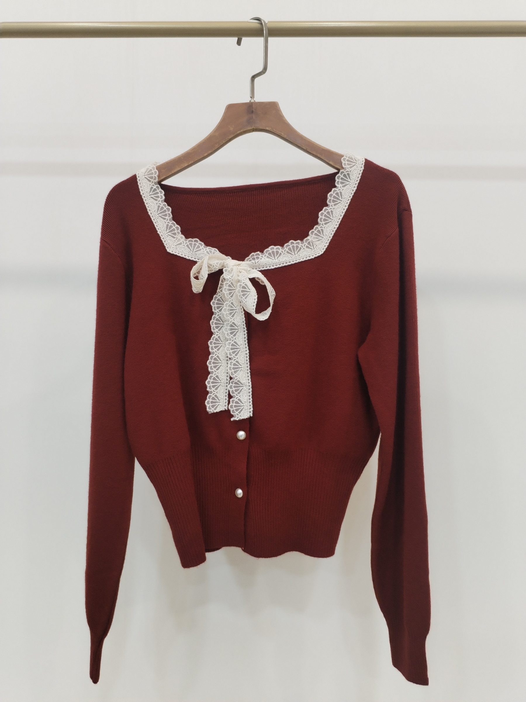 532 Sales: Shimona Square Neck Lacy Tie-Sash Knit Cardigan (B 44-54cm; L 47cm)
