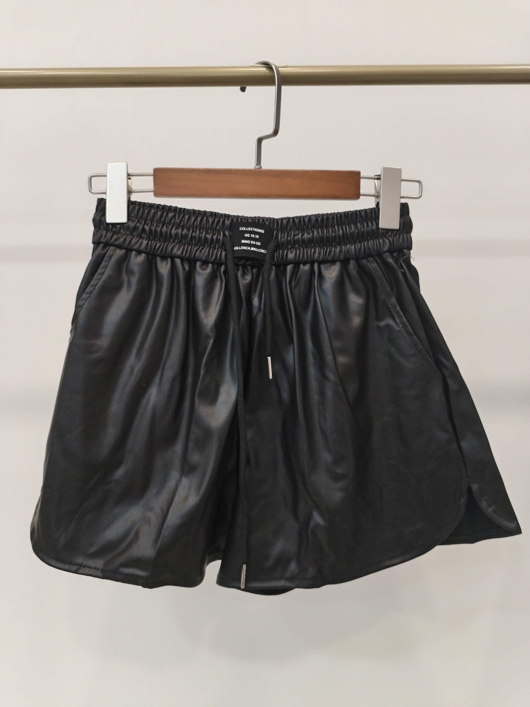 689 Sales: Lausanne Elastic Tie-Waist Leather Shorts (UW 29-46cm; H 41-52cm; L 35cm)