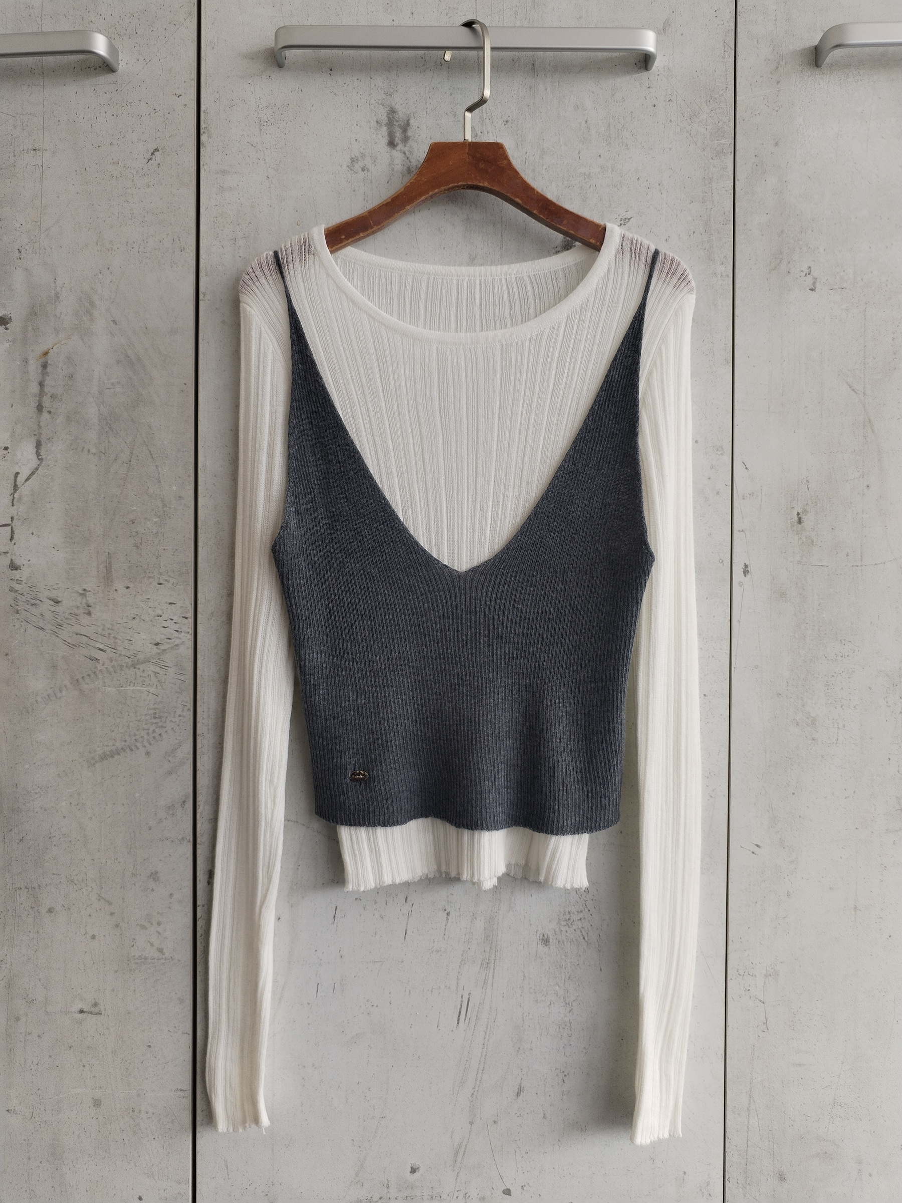 8027 Leah Long Sleeve Knit Top w Cami Patch (B 39-51cm; L 50cm)